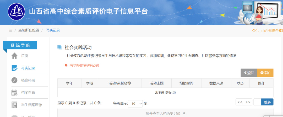 山西省高中综合素质评价电子信息平台学生端登录入口: