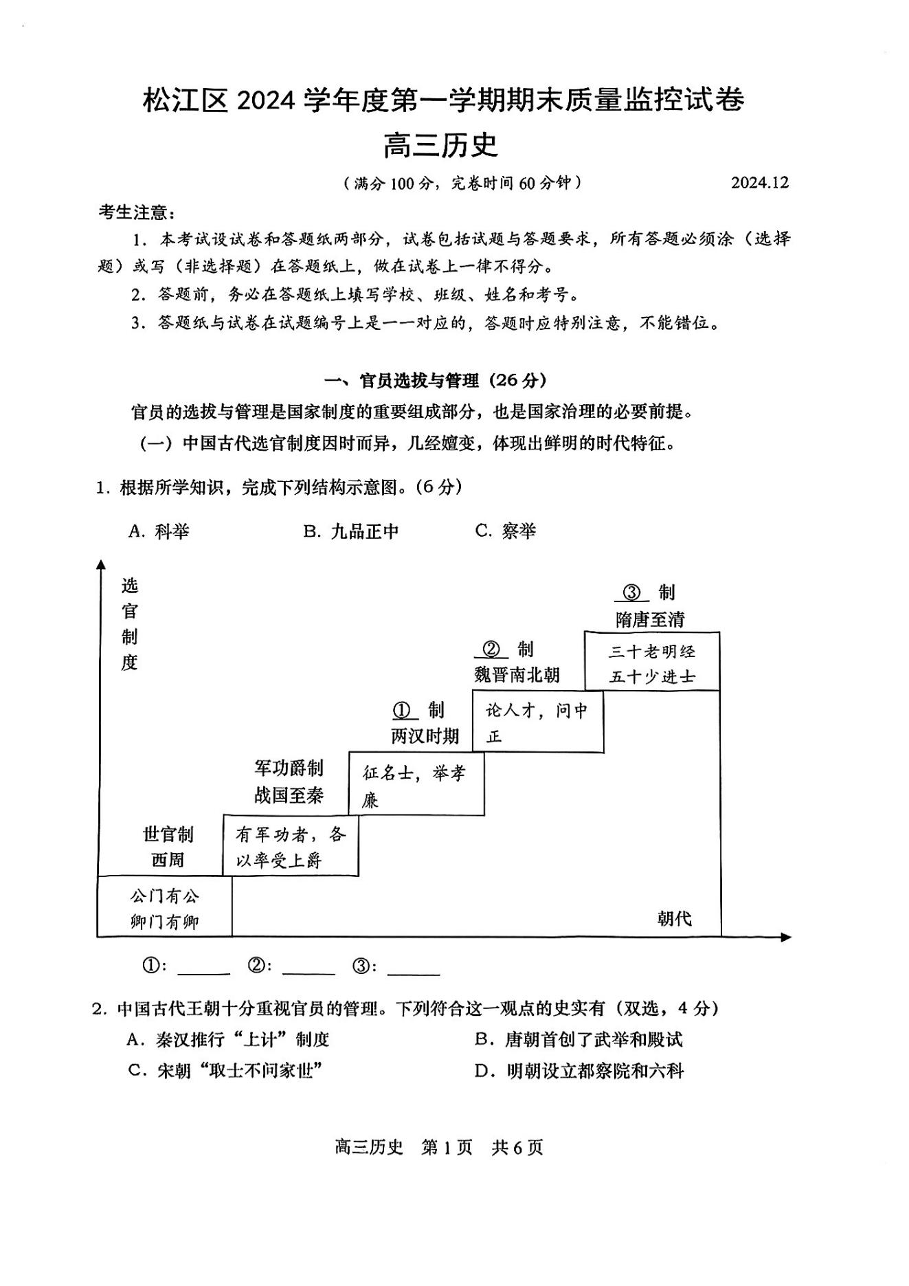 上海松江区2025届高三一模于12月4日开考,易单招网小编整理上海松江区2025届高三一模历史试题,欢迎考生学习。上海松江区2025届高三一模历史试题及答案