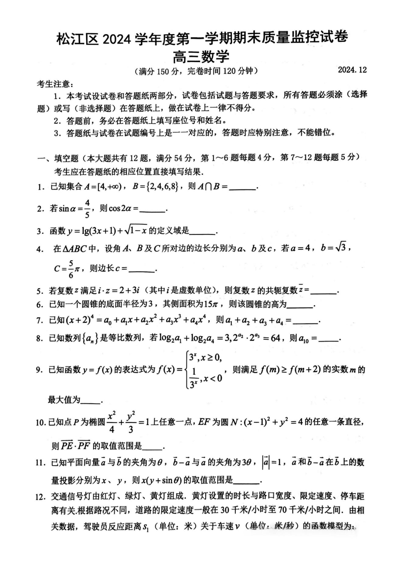 上海松江区2025届高三一模于12月4日开考,易单招网小编整理上海松江区2025届高三一模数学试题,欢迎考生下载学习。上海松江区2025届高三一模数学试题