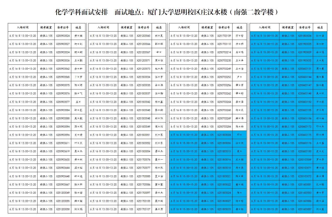厦门大学2025年强基计划招生考试复试化学面试入场时间、候考教室等详细安排公布。