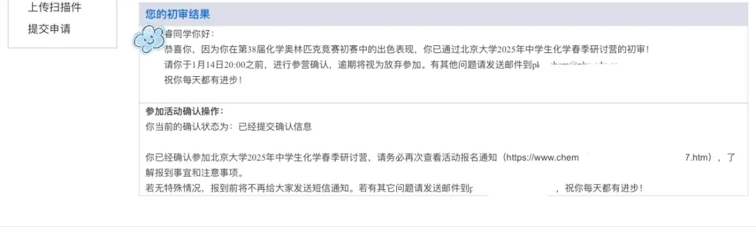 北京大学2025年中学生化学春季研讨营初审结果出炉,考生家长可进入报名系统查询。通过的考生请务必在1月14日周一晚20:00前,在报名系统里确认是否参加。若不确认默认为放弃参营!北京大学2025年中学生化学春季研讨营初审结果查询查询链接:h...