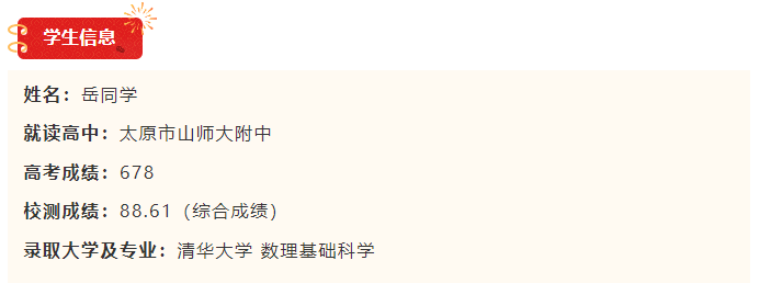 今天带来岳同学的真实经历:他连续两年获得数学竞赛省一,校内成绩一直排在年级综合前三名,最终以高考678分的成绩通过强基计划上岸清华大学未央书院!他为特殊招生做了哪些准备?初高中考生家长有哪些经验可以学习?赶快来看!