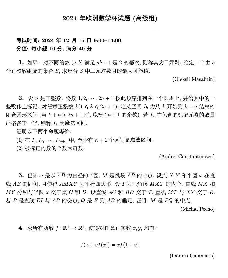 2024年第13届欧洲数学杯比赛结束,易单招网小编分享欧洲数学杯(EMC)初级组试题。本届赛事,中国区选送了三道试题,初级组的第一题由陈开老师提供,第三题由王卫华老师提供。
