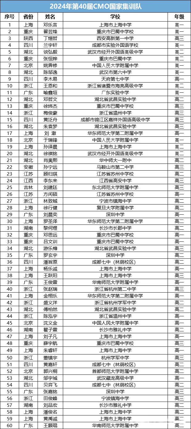 易单招网小编第一时间汇总整理了本届数学决赛国集(金牌前60人)、金牌(218人)、银牌(306人)、铜牌(171人),易单招网小编从国家集训队的角度整理了今年实力强劲的高中,一起来看下吧。而在这60人中,如果咱们进一步归类,比如分别从省市和...