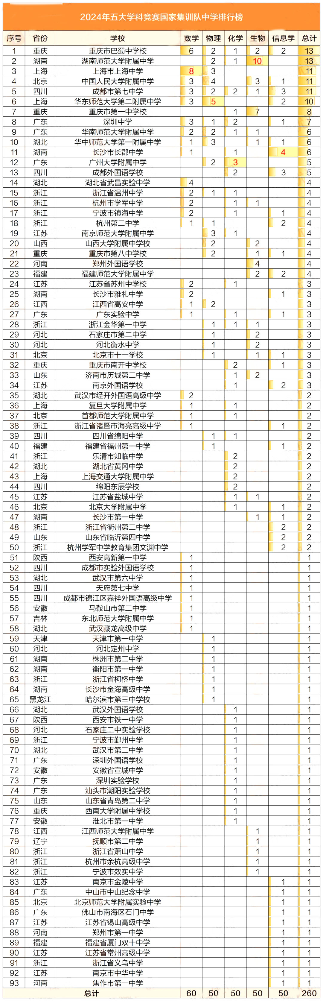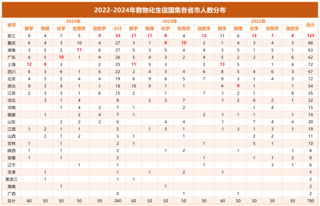 随着2024年数学决赛12月2日在浙江落下帷幕,至此,2024年度数理化生信五大学科竞赛已全部结束。各省竞赛实力如何?哪所中学表现亮眼?易单招网小编为大家汇总整理了五大学科竞赛国集各省市、中学分布情况,一起来看!一、国集各省市人数分布以下是...