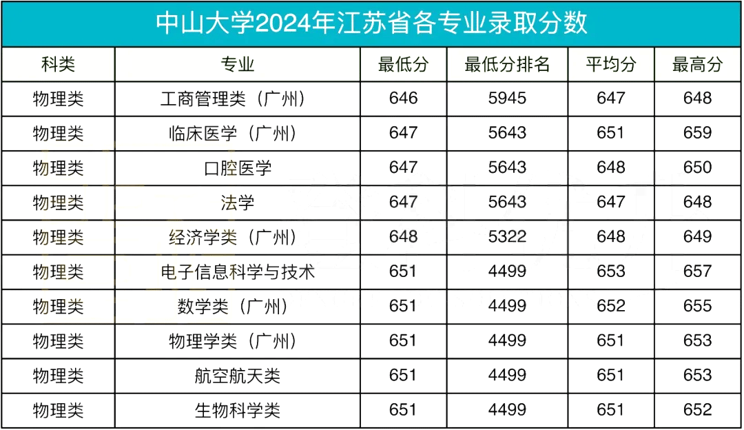 目前,多所院校已发布2024年在江苏地区的分专业录取线。通常而言,录取分数较高的专业往往被视为高校的热门专业,这些正是广大考生及家长需要给予特别关注的专业领域。今天,易单招网小编整理了985院校中中山大学的各专业录取信息,一起来看!