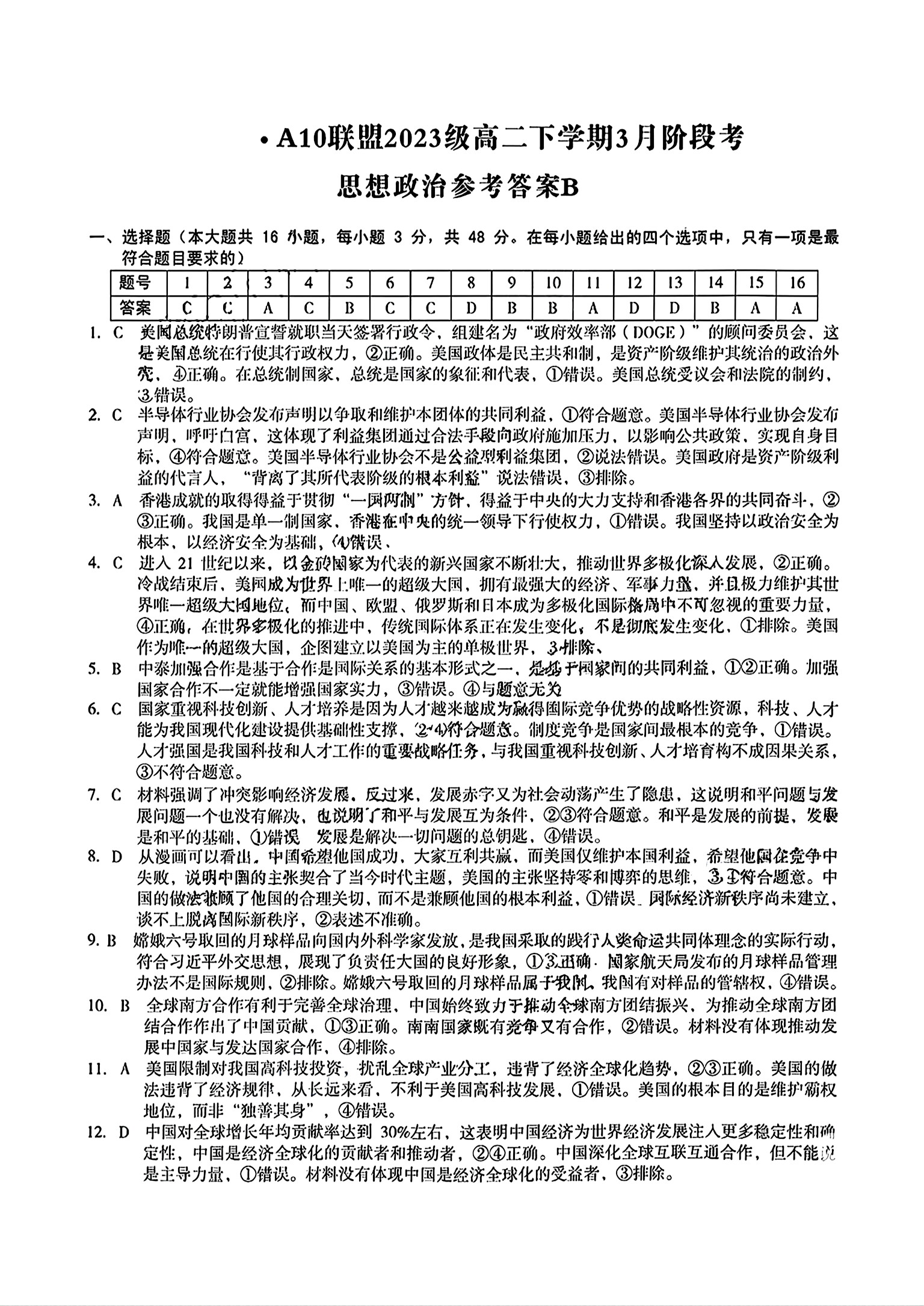 1号卷·A10联盟 2023级高二下学期3月阶段考考试于3月17日-18日进行,政治试题答案出炉!本次考试试题立足“双基",重点考查主干知识。试题结合新高考最新信息命制,注重原创,材料新、角度新,难度适中。为方便考生巩固练习,易单招网小编整理2025年安徽A10联盟高二下学期3月阶段考政治试题及答案资料,欢迎下载。