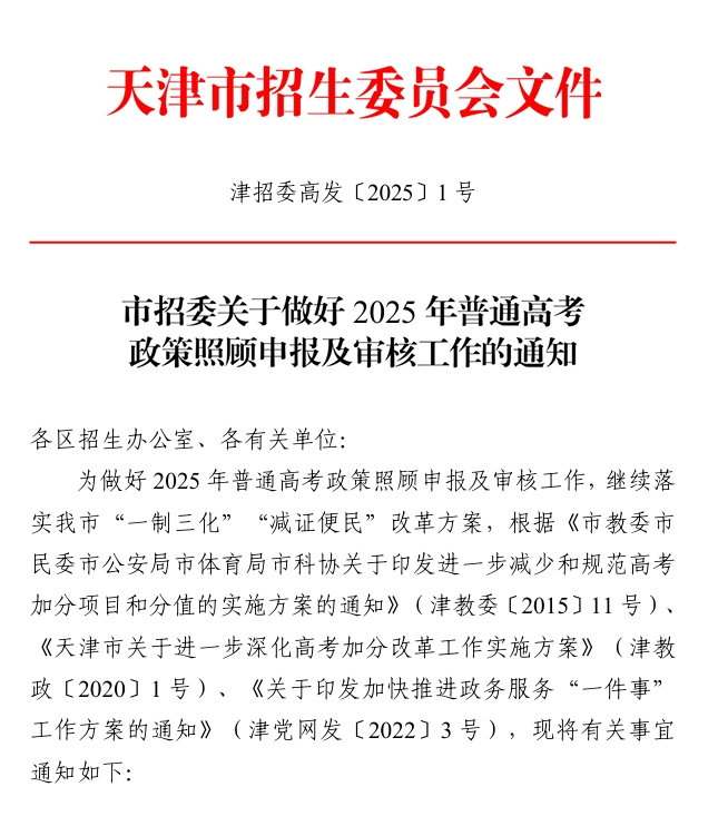 易单招网小编依据天津市招生委员会最新资讯,特整理2025年天津高考加分政策的相关内容,一起来看下吧。