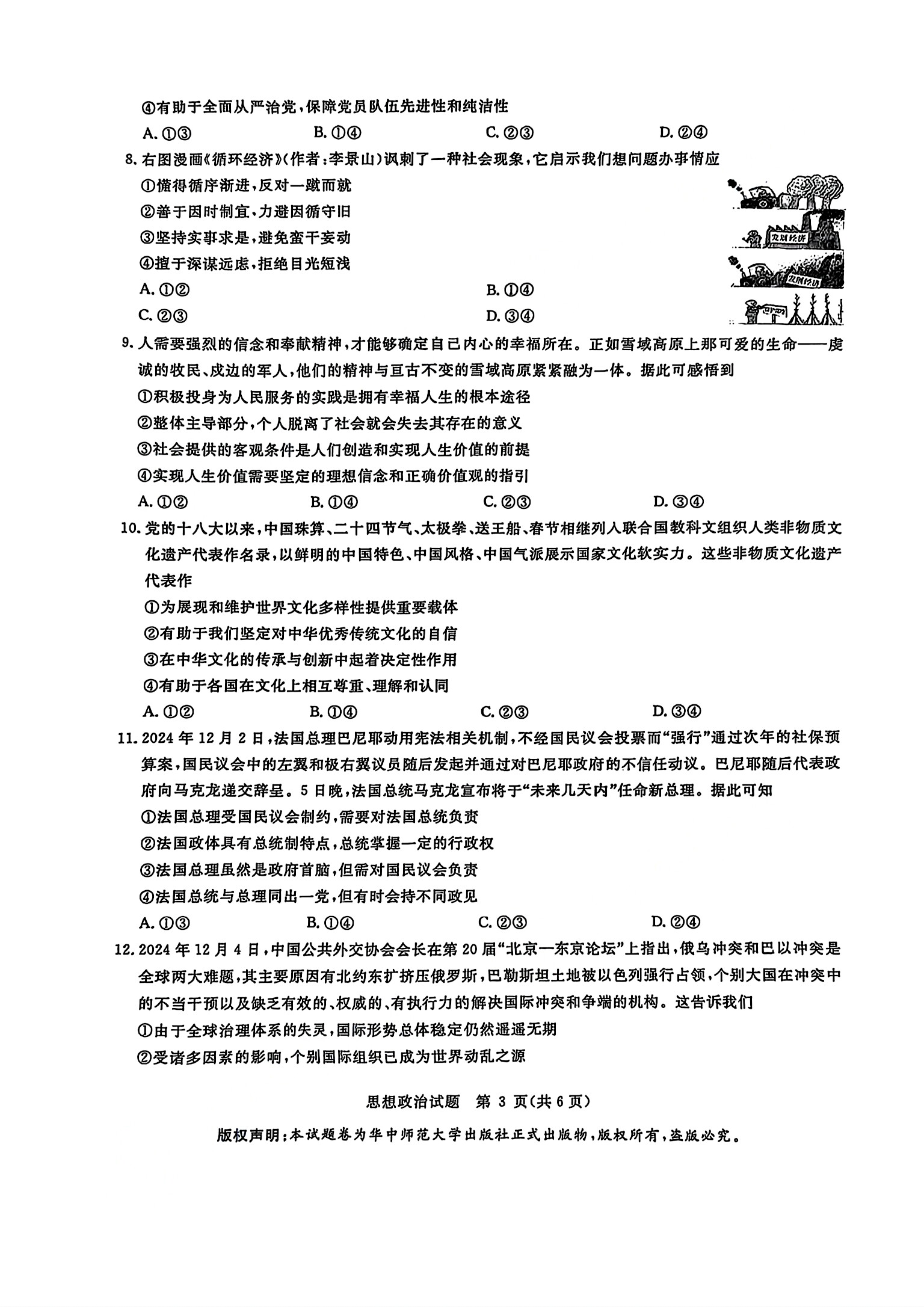 湖北华大新高考联盟2025届高三3月教学质量测评政治试题及答案.pdf