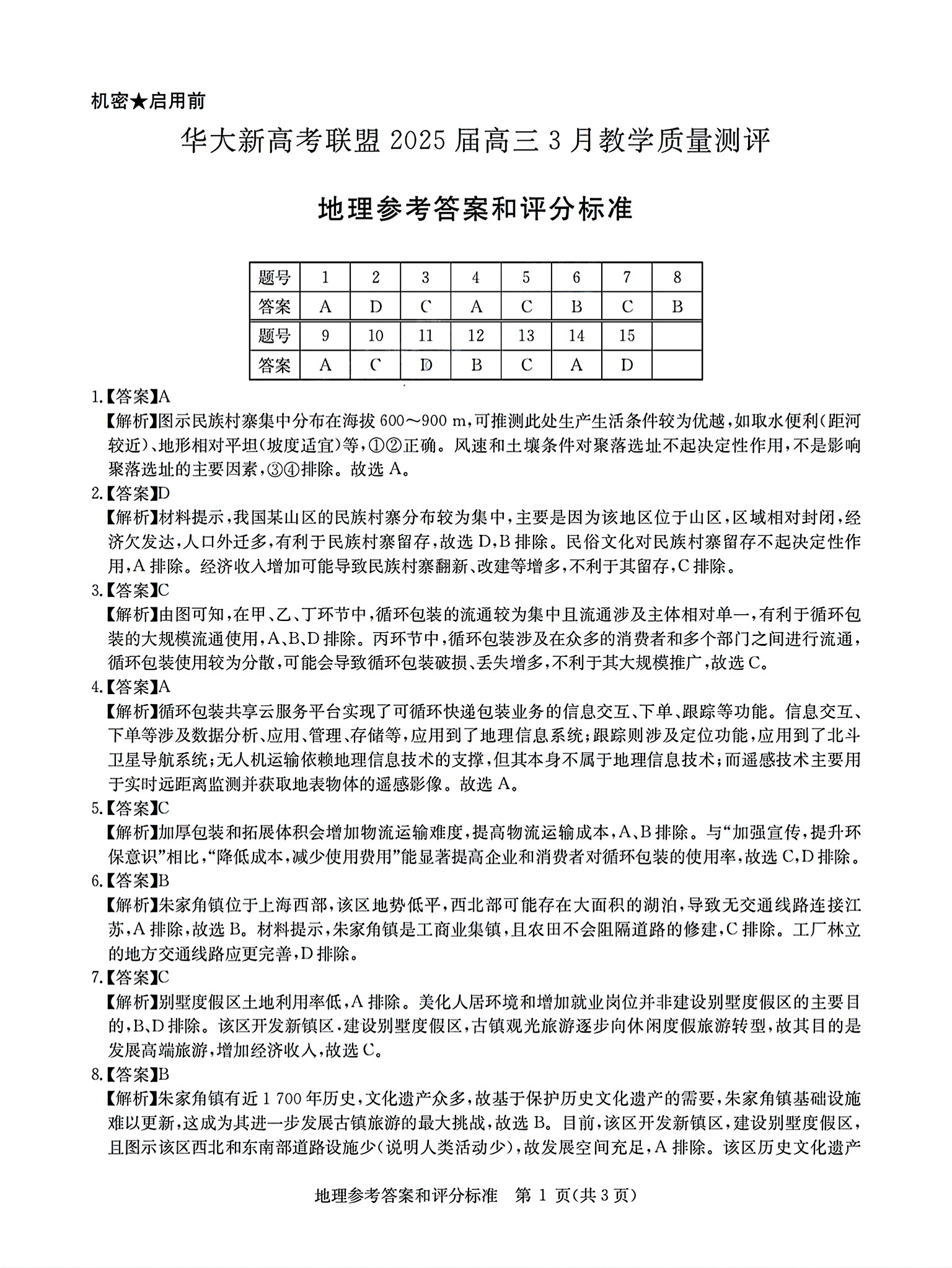 湖北华大新高考联盟2025届高三三月教学质量检测地理试题及答案.pdf