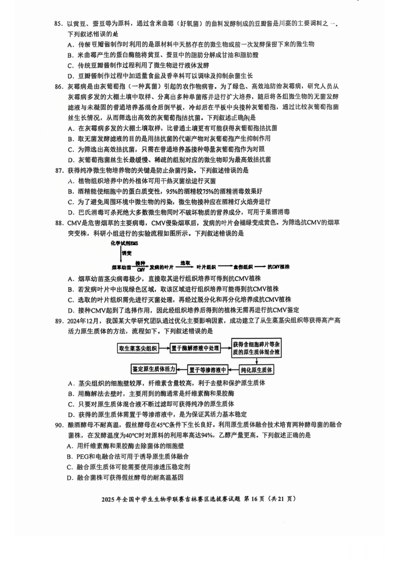 2025年全国中学生生物学联赛吉林赛区初赛试题已经公布,易单招网小编整理2025年全国中学生生物学联赛吉林赛区初赛试题以便考生参考!
